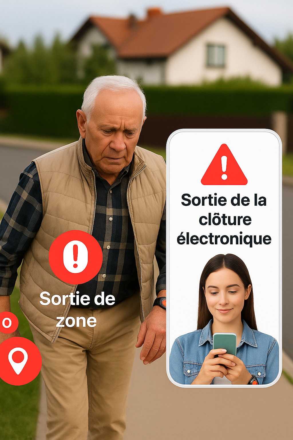 l'historique des trajets, la clôture virtuelle (alerte si la personne sort d’une zone définie)