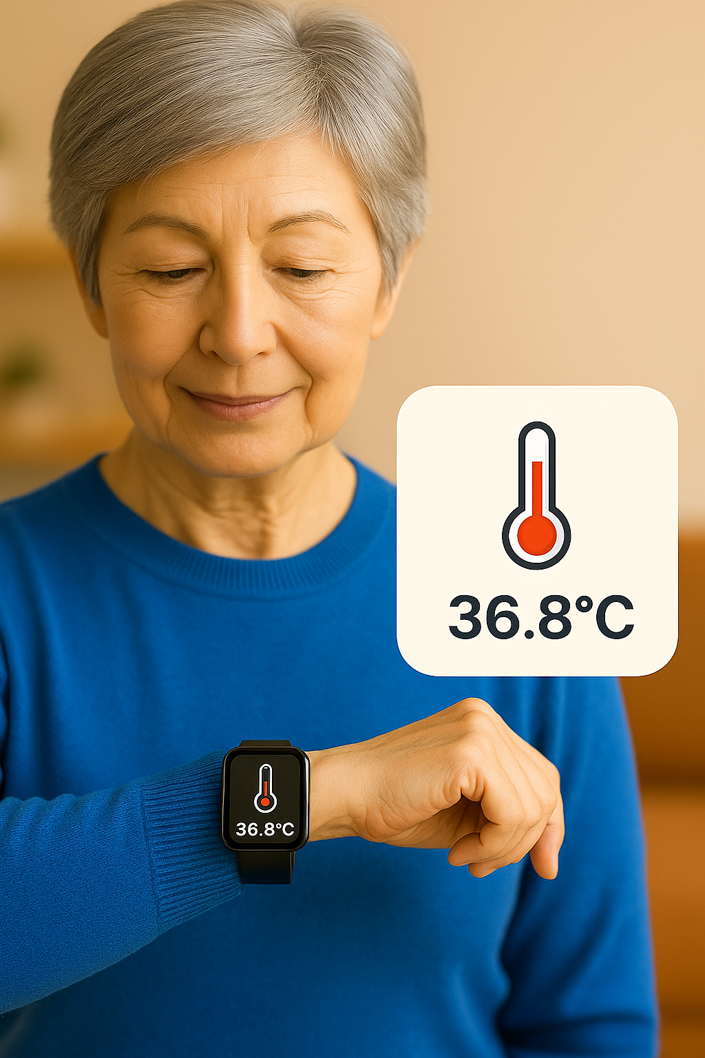 | Prise de température corporelle en temps réel, suivi cardiaque, tension, oxygène dans le sang | ||