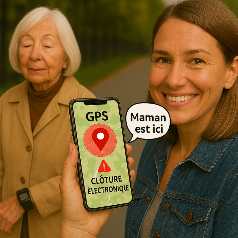l'historique des trajets, la clôture virtuelle (alerte si la personne sort d’une zone définie)