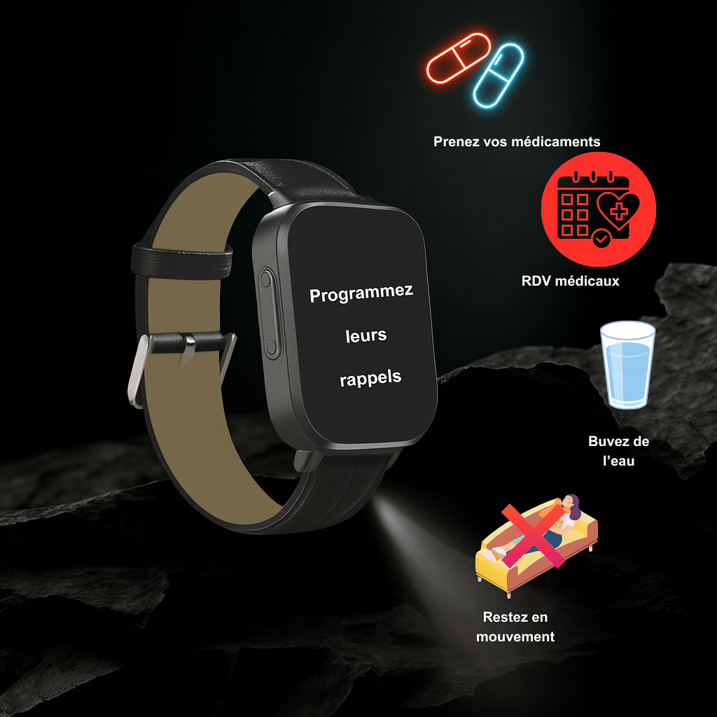Avec cette montre, vous gardez un œil bienveillant sur le cœur, le souffle et l’énergie de vos parents… tout en sachant qu’en cas de chute, vous seriez immédiatement prévenu.