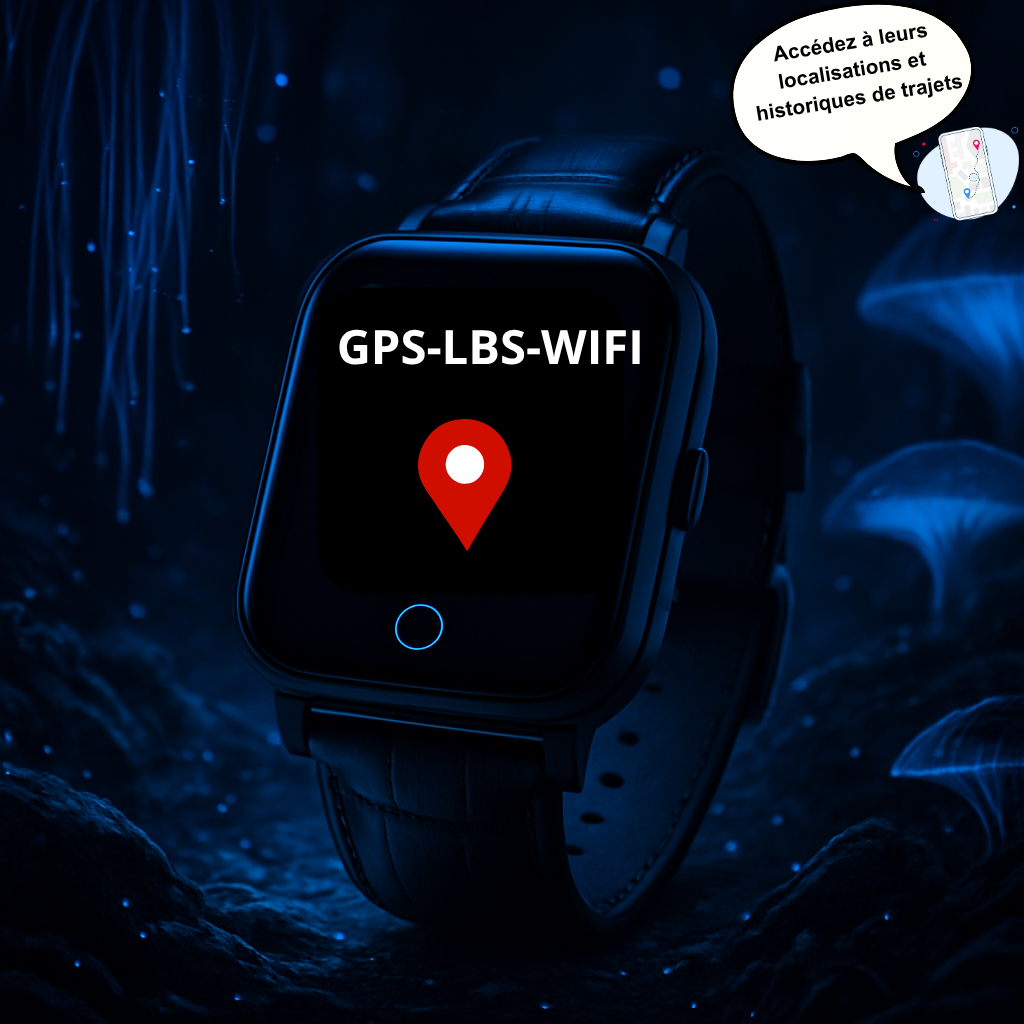 La montre utilise 3 modes de localisation : GPS + LBS + WiFi, permettant un positionnement très précis en temps réel, même à l’intérieur.